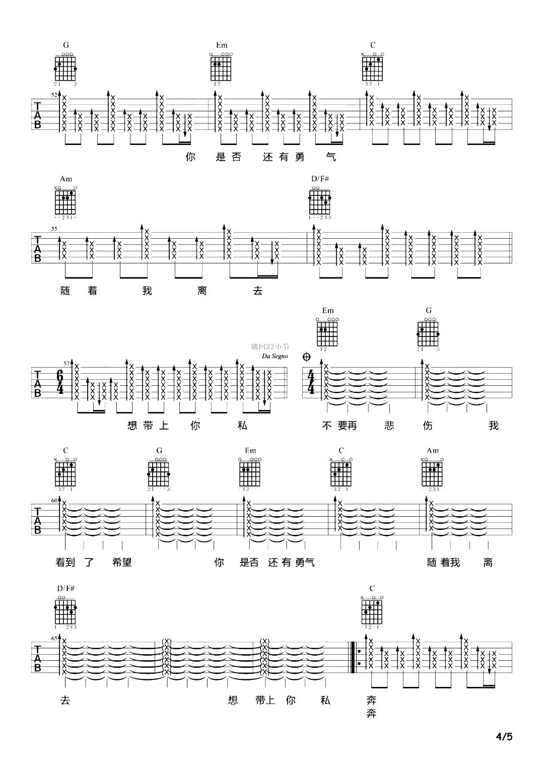 您现在的位置是:首页 > 吉他谱 > 郑钧《私奔吉他谱》 郑钧《私奔吉他谱》 日期:2024-07-24 15:05:01 郑钧 南音吉他小屋制作的《私奔》吉他弹唱谱以清晰的高清图片呈现,共5张图例。适宜男生用夹2品,女生则建议夹4品。曲谱左手和弦简单易学,适合初学者。演示视频通过生动演绎展示了弹唱技巧。值得注意的是,男生在演奏时可考虑使用变调夹,以增添音乐的层次感。右手的四种伴奏手法巧