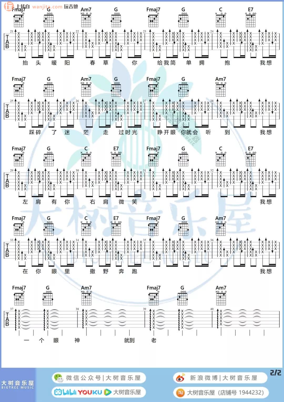 这是一份由大树音乐屋分享的《撒野》吉他弹唱谱,原调为D调,但推荐选用C调,并使用变调夹在2品的位置,使曲子回归原调。歌曲的节奏相对简单,适合新手学习,然而和弦的变化需要额外的注意。总共提供了2张高清图片谱例,供学习参考。此外,还附有《撒野》吉他弹唱演示视频,为