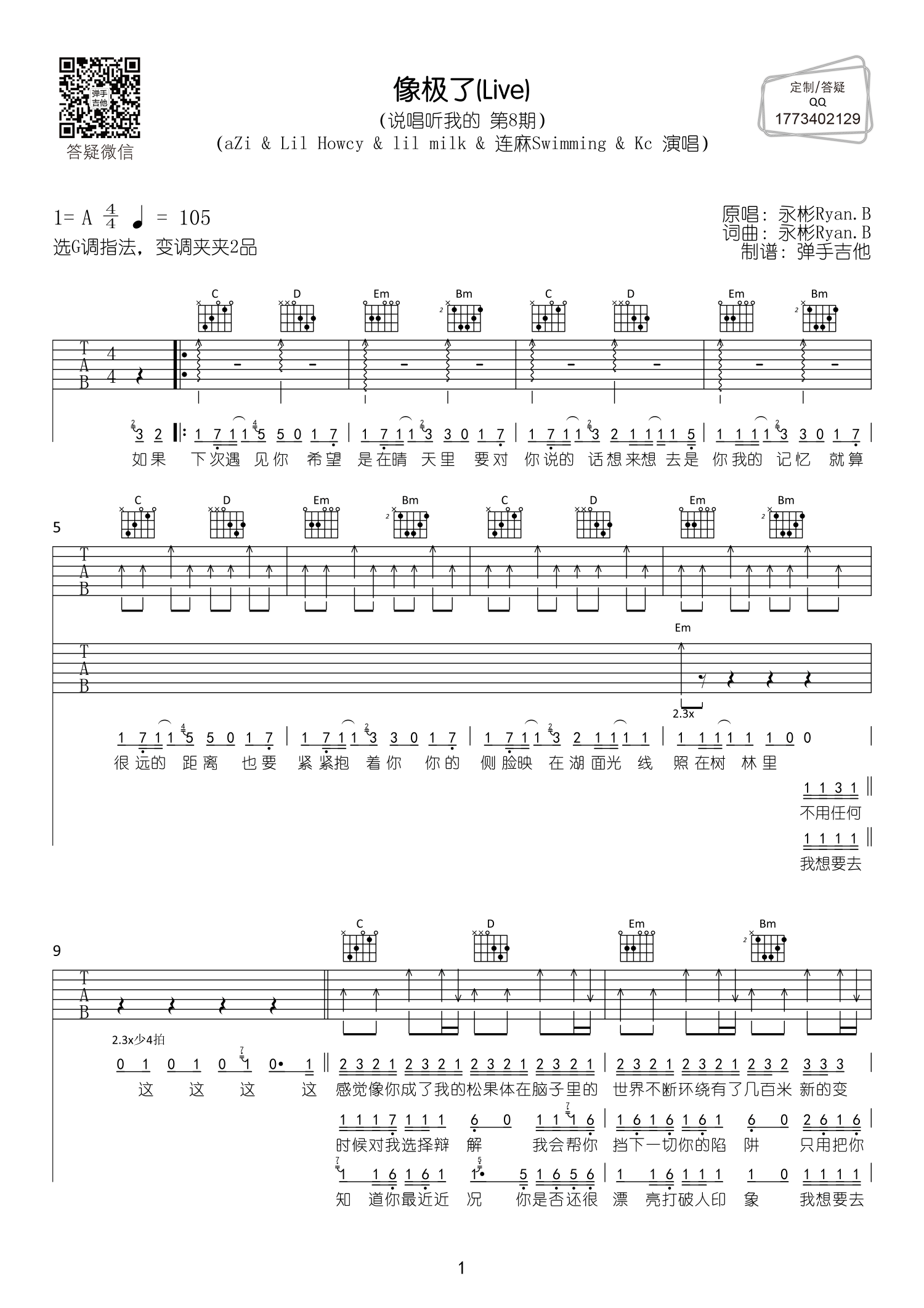 《永彬Ryan.B《像极了吉他谱》(G调)》内容来自于互联网,不能保证内容的准确性与完整性,仅供学习交流欣赏,请勿用于其它用途,内容版权归原作者及来源网站所有,如有侵犯到您的权益请来信告知,我们将及时删除。