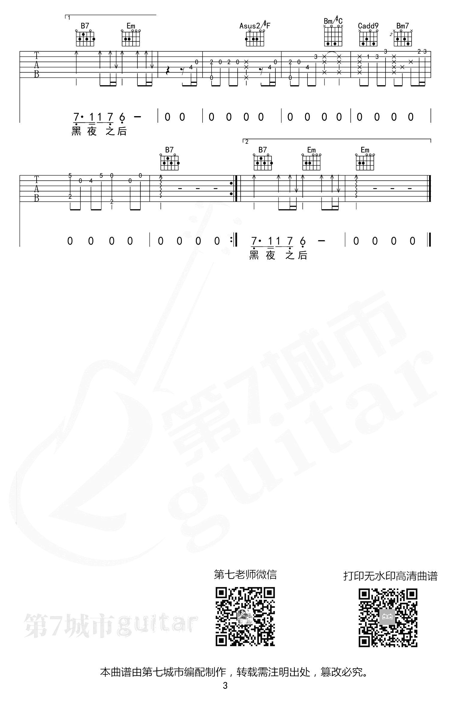 《落日与晚风》吉他弹唱谱由第七城市编配制,共包含3张高清图片谱。原调为#G,采用G调指法,变调夹夹在1品处以弹唱原调。这首歌的前半部分节奏型是其难点所在,需要细心琢磨,以确保熟练掌握。希望大家在演奏过程中能够用心感受落日余晖与晚风拂面的美好画面,将这份情感融入