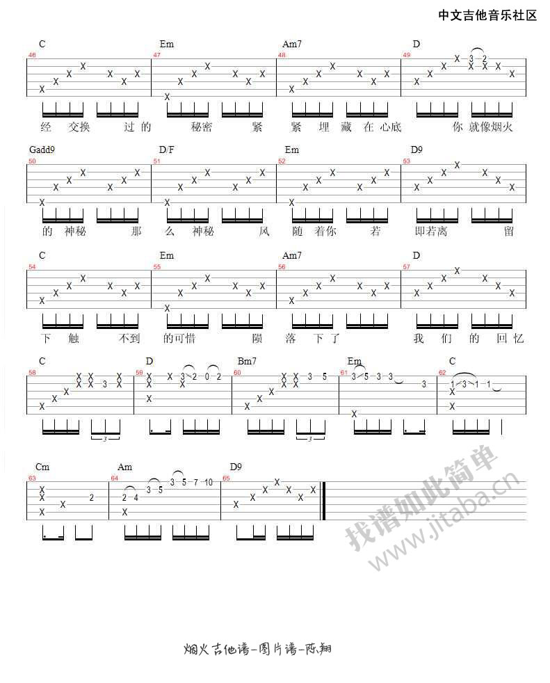 《陈翔《烟火吉他谱》(G调)》内容来自于互联网,不能保证内容的准确性与完整性,仅供学习交流欣赏,请勿用于其它用途,内容版权归原作者及来源网站所有,如有侵犯到您的权益请来信告知,我们将及时删除。
