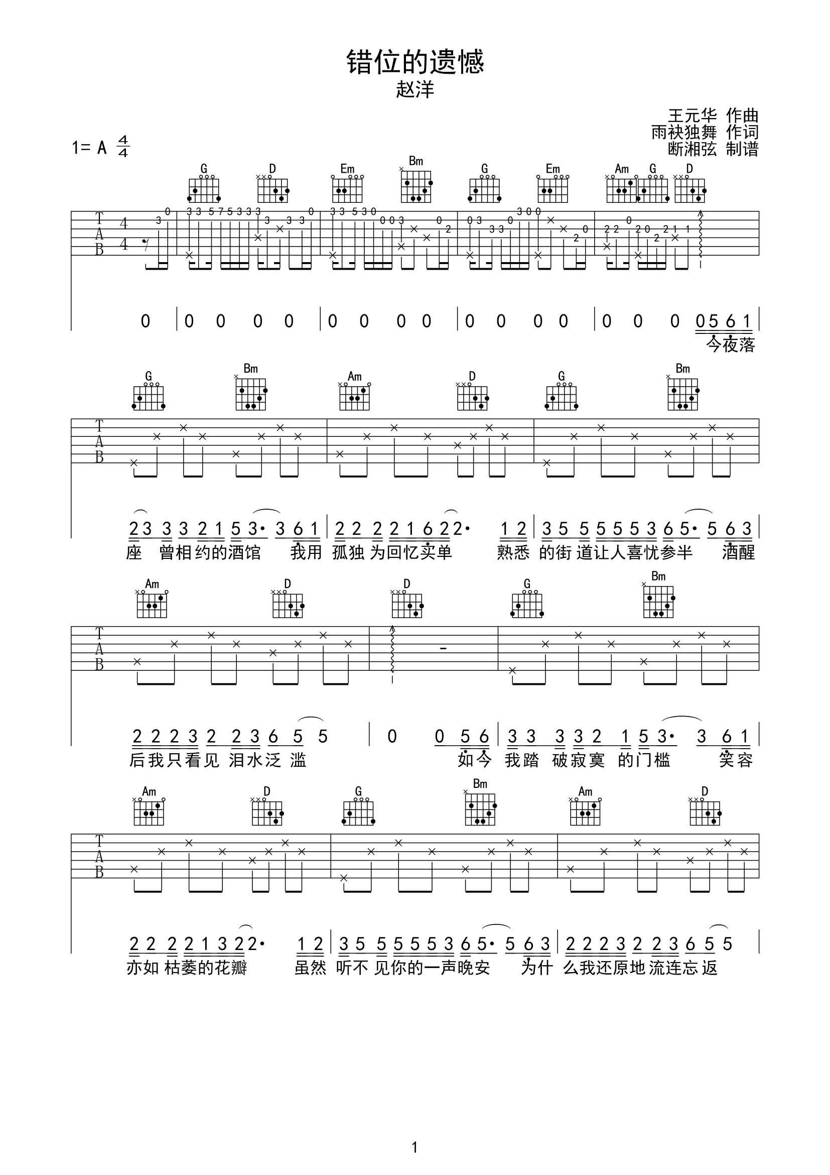 《《错位的遗憾吉他谱》(G调)》内容来自于互联网,不能保证内容的准确性与完整性,仅供学习交流欣赏,请勿用于其它用途,内容版权归原作者及来源网站所有,如有侵犯到您的权益请来信告知,我们将及时删除。