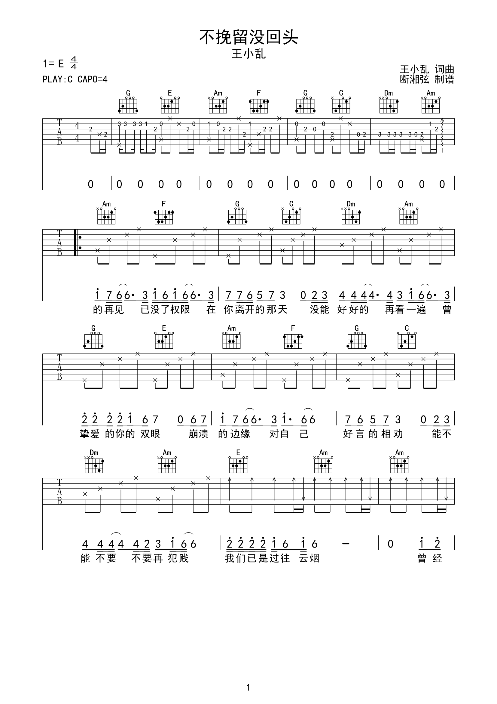 《《不挽留没回头吉他谱》(C调)》内容来自于互联网,不能保证内容的准确性与完整性,仅供学习交流欣赏,请勿用于其它用途,内容版权归原作者及来源网站所有,如有侵犯到您的权益请来信告知,我们将及时删除。