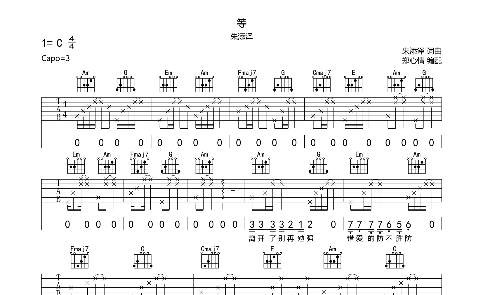 《朱添泽《等吉他谱》(C调)》内容来自于互联网,不能保证内容的准确性与完整性,仅供学习交流欣赏,请勿用于其它用途,内容版权归原作者及来源网站所有,如有侵犯到您的权益请来信告知,我们将及时删除。