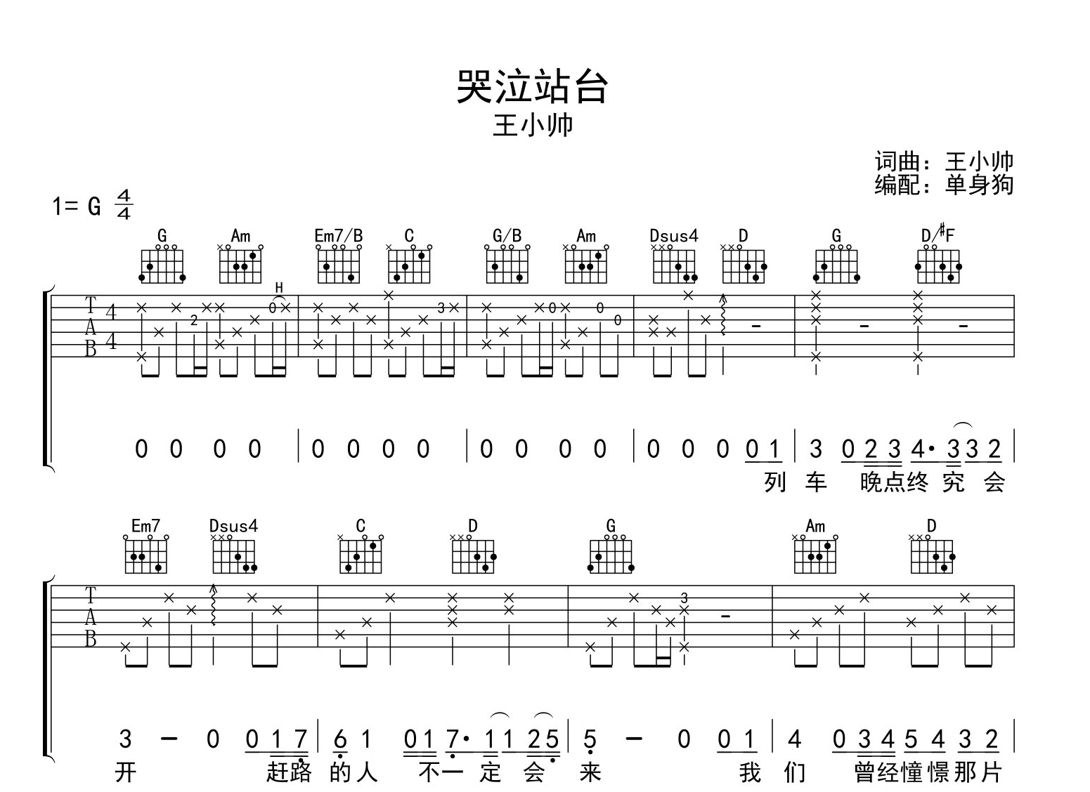 本站的《哭泣站台吉他谱》(G调)