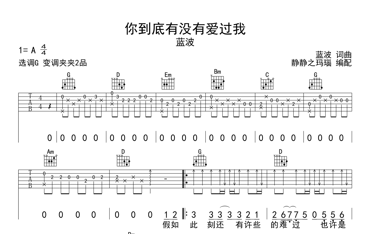 《蓝波《你到底有没有爱过我吉他谱》(G调)》内容来自于互联网,不能保证内容的准确性与完整性,仅供学习交流欣赏,请勿用于其它用途,内容版权归原作者及来源网站所有,如有侵犯到您的权益请来信告知,我们将及时删除。