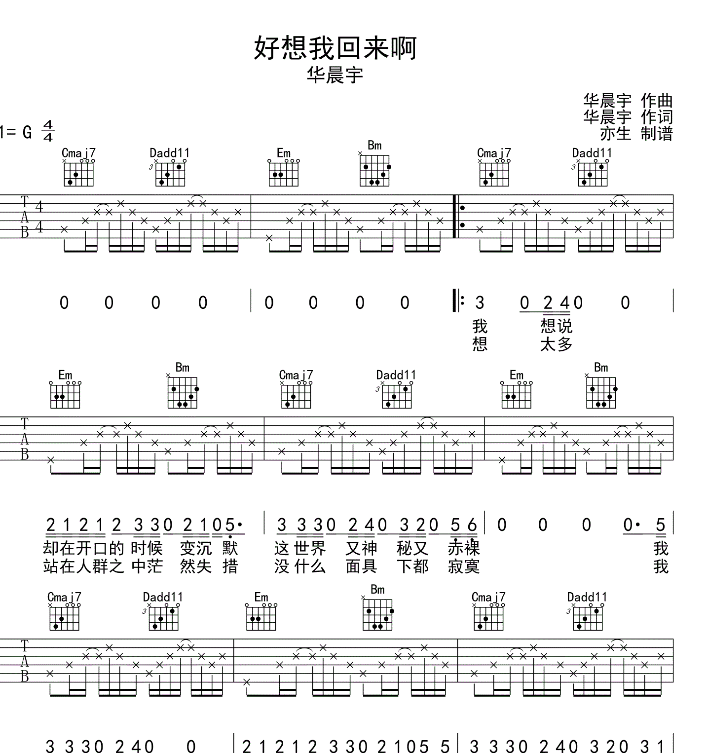 华晨宇《好想我回来啊吉他谱》(G调)