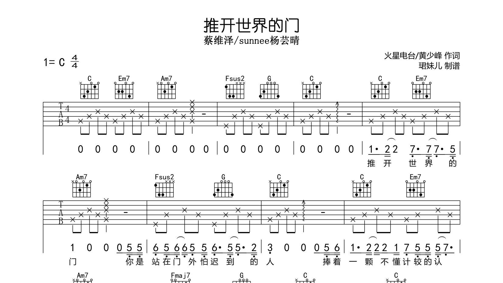 《《推开世界的门吉他谱》(C调)》内容来自于互联网,不能保证内容的准确性与完整性,仅供学习交流欣赏,请勿用于其它用途,内容版权归原作者及来源网站所有,如有侵犯到您的权益请来信告知,我们将及时删除。