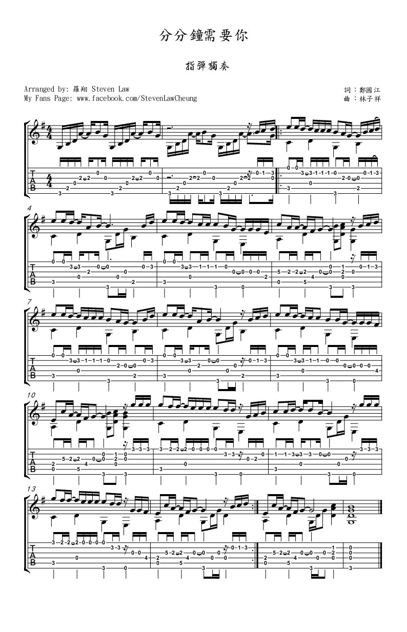 《林子祥《分分钟需要你吉他谱》》内容来自于互联网,不能保证内容的准确性与完整性,仅供学习交流欣赏,请勿用于其它用途,内容版权归原作者及来源网站所有,如有侵犯到您的权益请来信告知,我们将及时删除。