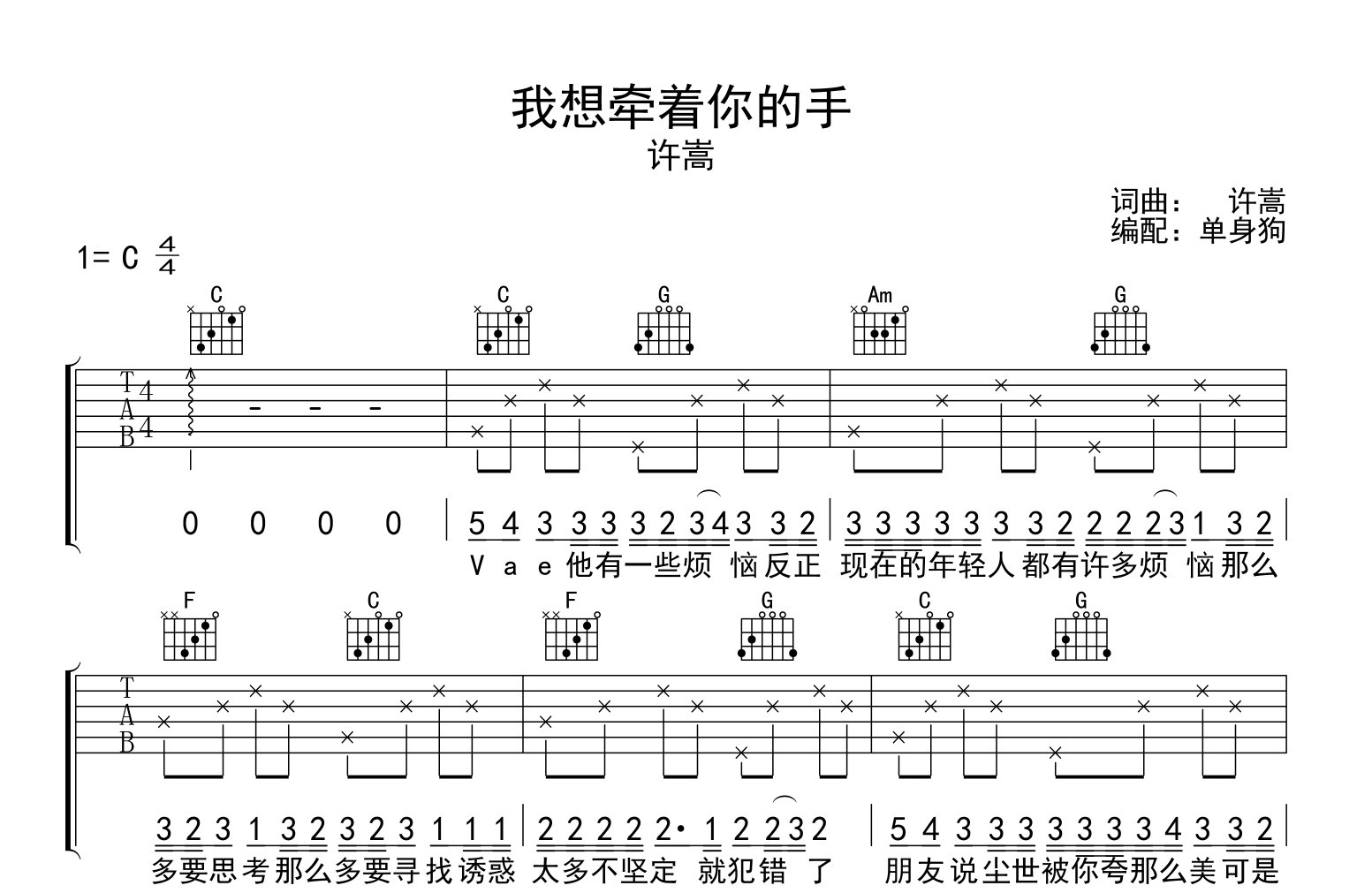 《许嵩《我想牵着你的手吉他谱》(C调)》内容来自于互联网,不能保证内容的准确性与完整性,仅供学习交流欣赏,请勿用于其它用途,内容版权归原作者及来源网站所有,如有侵犯到您的权益请来信告知,我们将及时删除。