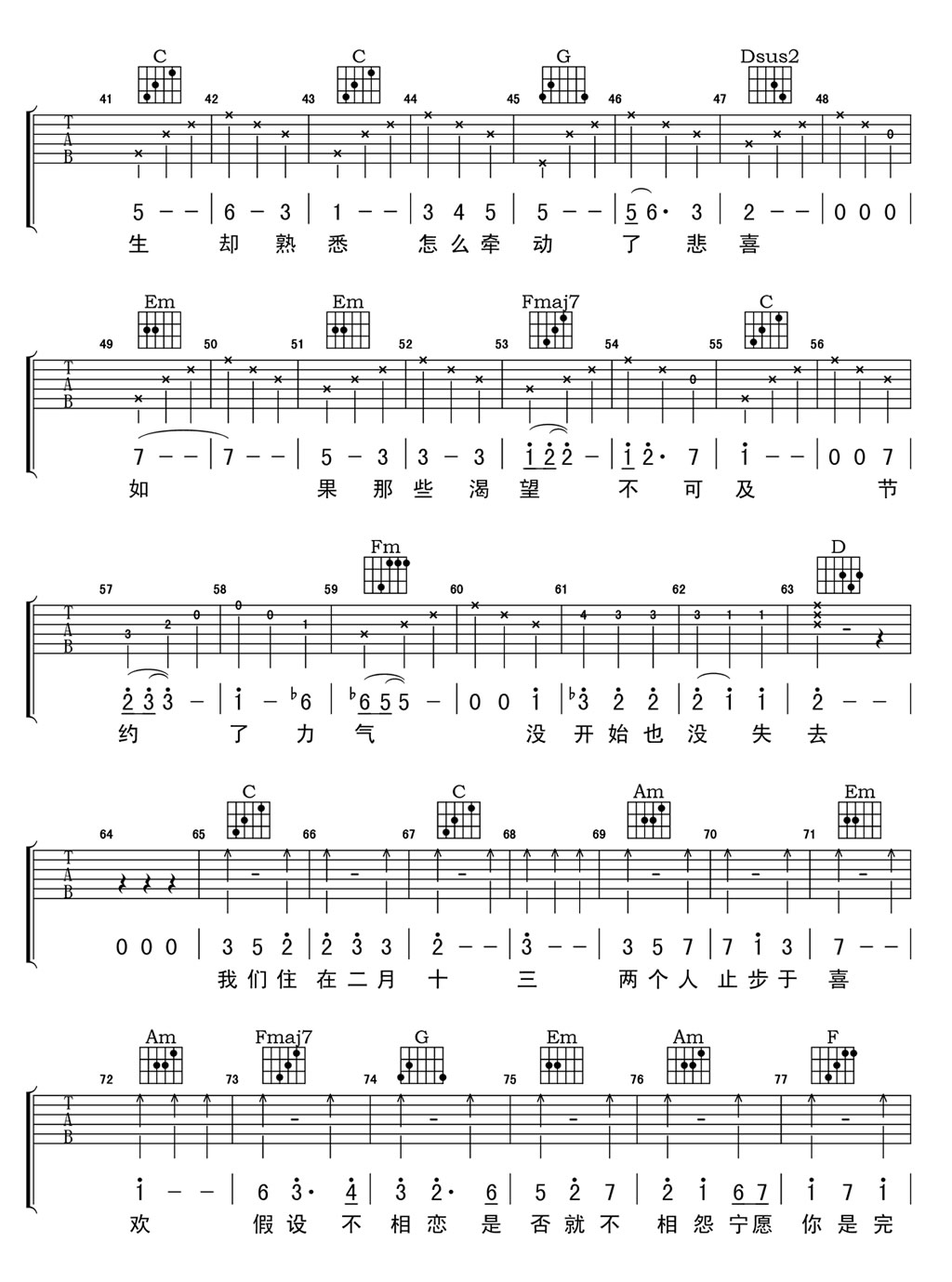 《金玟岐《13吉他谱》(C调)》内容来自于互联网,不能保证内容的准确性与完整性,仅供学习交流欣赏,请勿用于其它用途,内容版权归原作者及来源网站所有,如有侵犯到您的权益请来信告知,我们将及时删除。