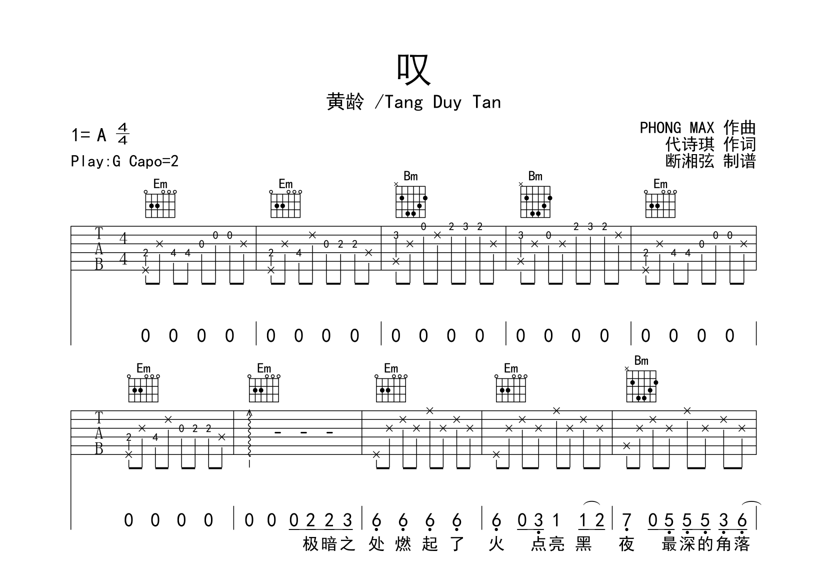 《黄龄《叹吉他谱》(G调)》内容来自于互联网,不能保证内容的准确性与完整性,仅供学习交流欣赏,请勿用于其它用途,内容版权归原作者及来源网站所有,如有侵犯到您的权益请来信告知,我们将及时删除。