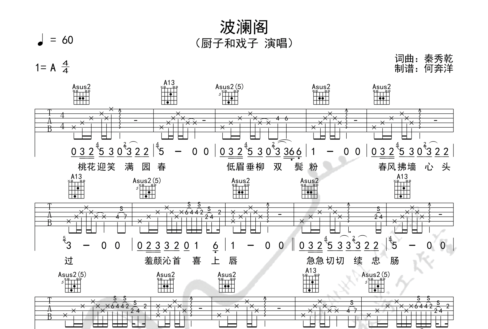 《厨子和戏子《波澜阁吉他谱》(A调)》内容来自于互联网,不能保证内容的准确性与完整性,仅供学习交流欣赏,请勿用于其它用途,内容版权归原作者及来源网站所有,如有侵犯到您的权益请来信告知,我们将及时删除。