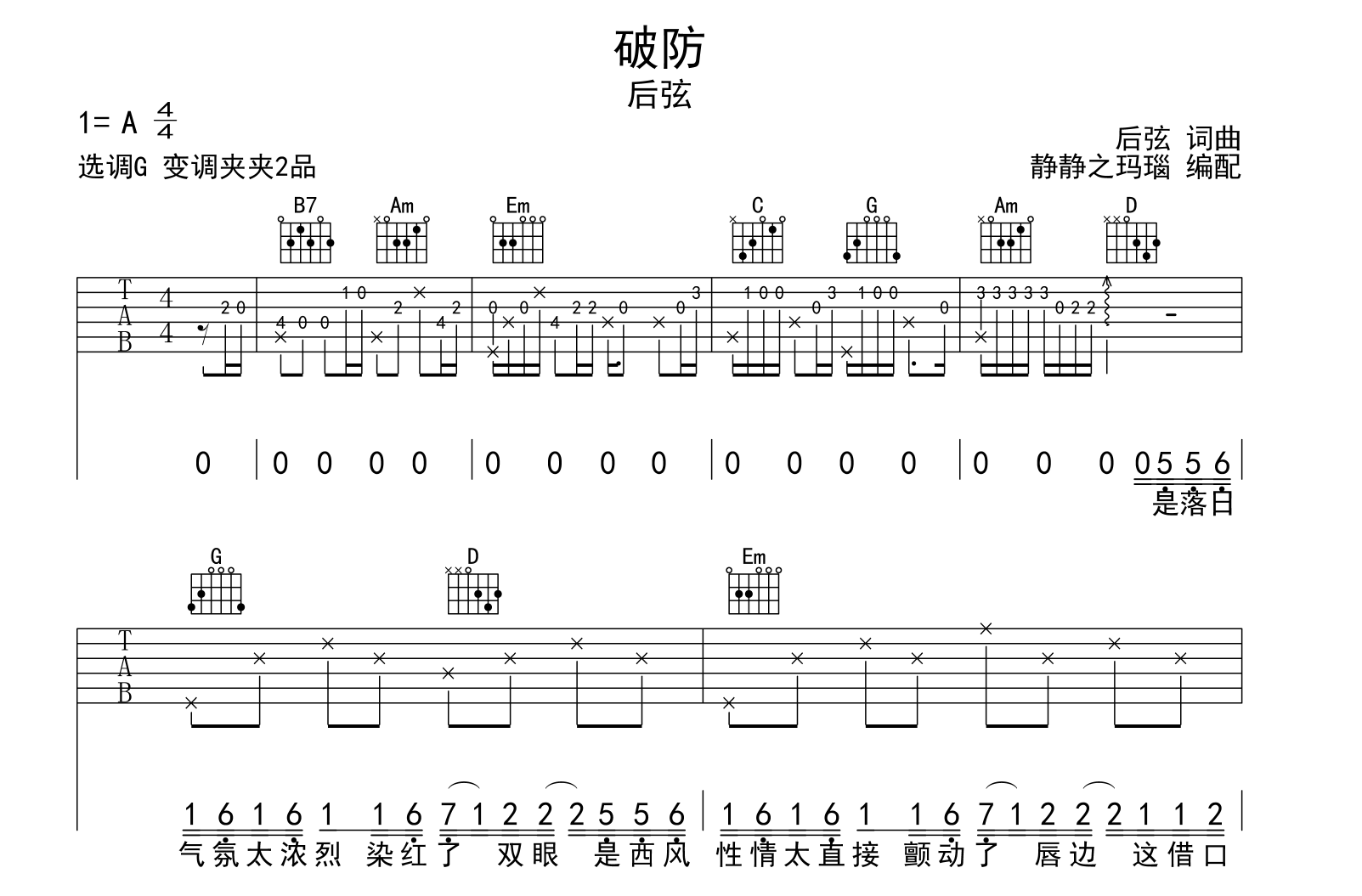 《后弦《破防吉他谱》(G调)》内容来自于互联网,不能保证内容的准确性与完整性,仅供学习交流欣赏,请勿用于其它用途,内容版权归原作者及来源网站所有,如有侵犯到您的权益请来信告知,我们将及时删除。