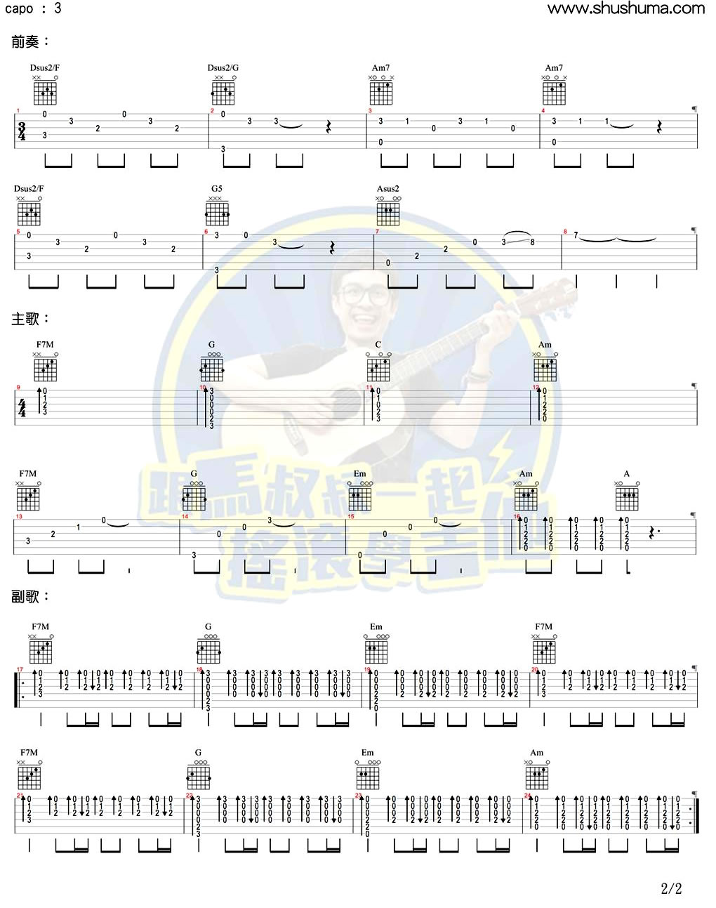 这首歌曲《李毓芬》的吉他谱分为前奏、主歌和副歌三个部分,需要在第三品上使用Capo夹。教学视频由马叔叔提供,帮助吉他手们学会演奏。这首曲目表达了作者对爱情的真挚情感,以及对自身不足的自责与反思。