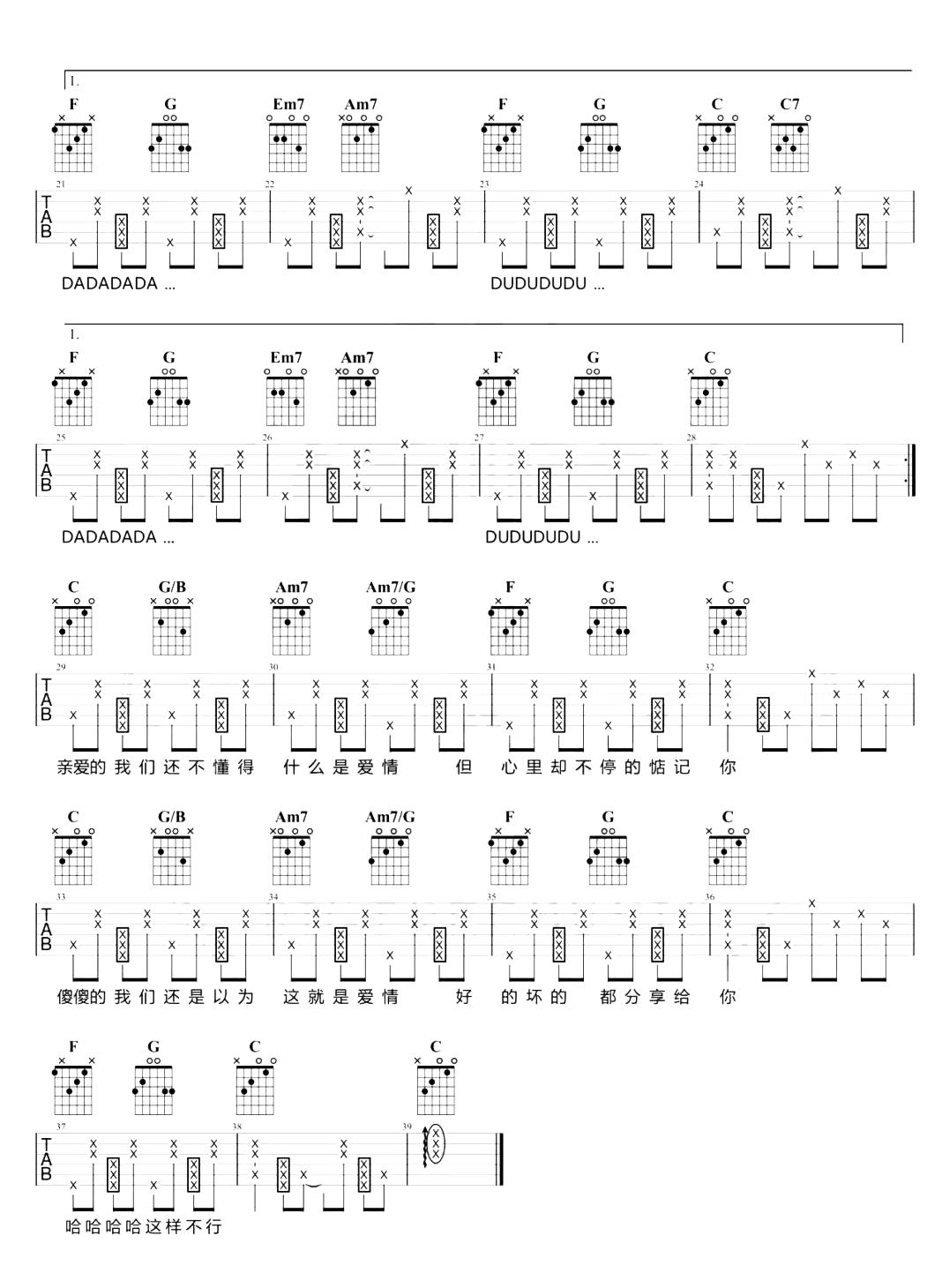 《孟慧圆《哈哈哈吉他谱》(C调)》内容来自于互联网,不能保证内容的准确性与完整性,仅供学习交流欣赏,请勿用于其它用途,内容版权归原作者及来源网站所有,如有侵犯到您的权益请来信告知,我们将及时删除。