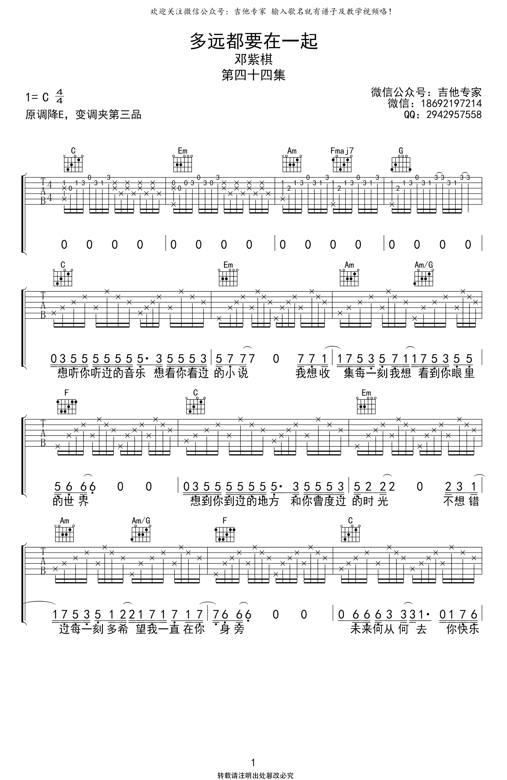 《邓紫棋《多远都要在一起吉他谱》(C调)》内容来自于互联网,不能保证内容的准确性与完整性,仅供学习交流欣赏,请勿用于其它用途,内容版权归原作者及来源网站所有,如有侵犯到您的权益请来信告知,我们将及时删除。