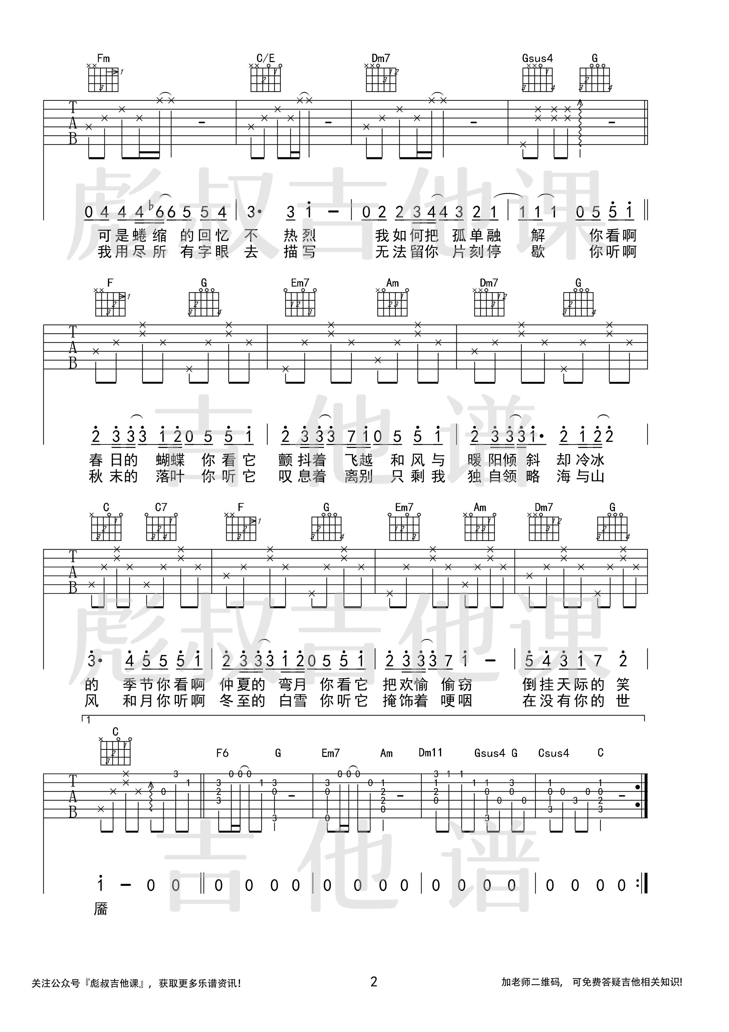 《时光流逝《冬眠吉他谱》(C调)》内容来自于互联网,不能保证内容的准确性与完整性,仅供学习交流欣赏,请勿用于其它用途,内容版权归原作者及来源网站所有,如有侵犯到您的权益请来信告知,我们将及时删除。