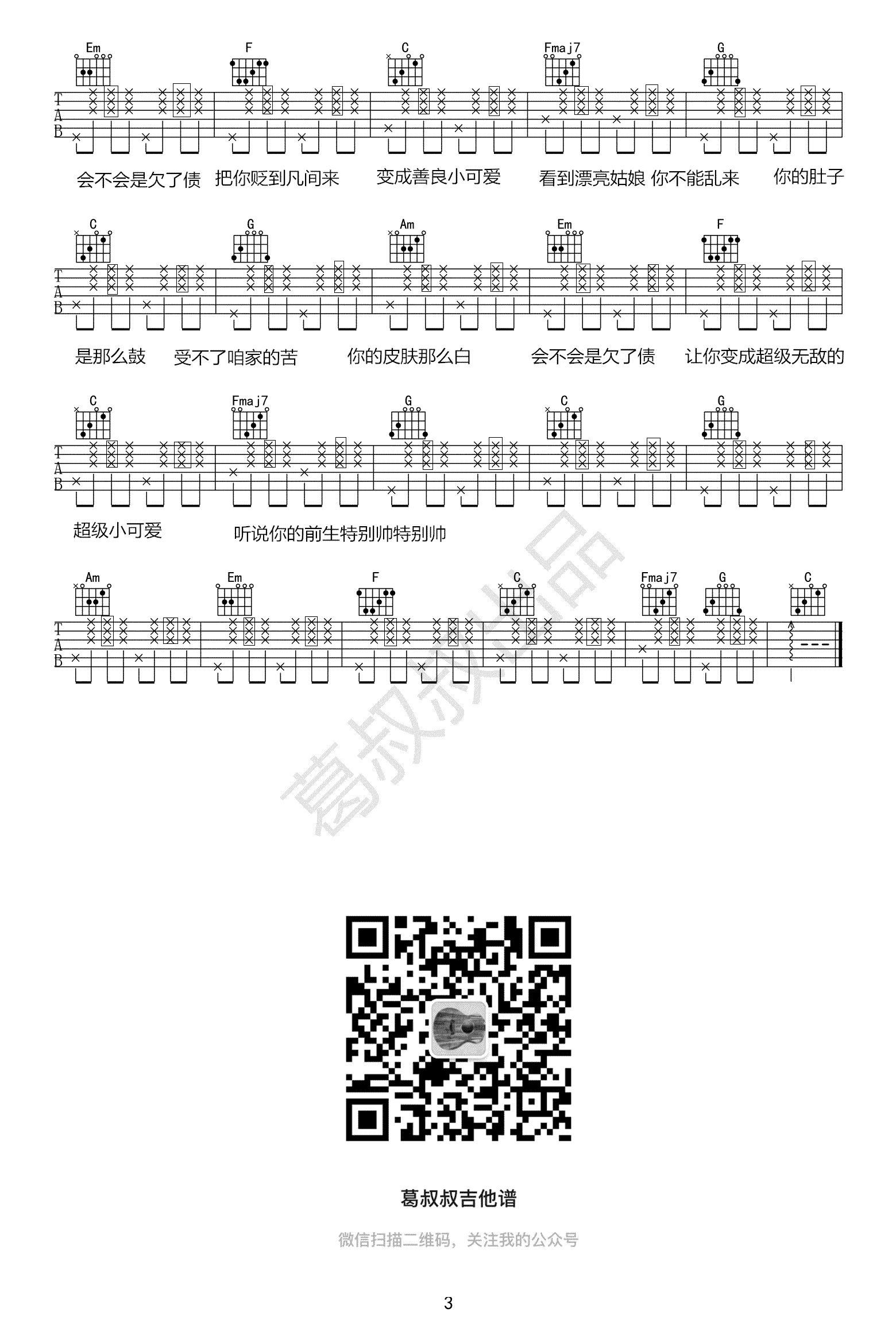《胡艾彤《喂猪吉他谱》(C调)》内容来自于互联网,不能保证内容的准确性与完整性,仅供学习交流欣赏,请勿用于其它用途,内容版权归原作者及来源网站所有,如有侵犯到您的权益请来信告知,我们将及时删除。