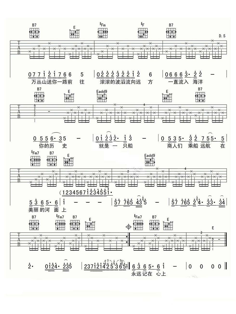 《《美丽的梭罗河吉他谱》(E调)》内容来自于互联网,不能保证内容的准确性与完整性,仅供学习交流欣赏,请勿用于其它用途,内容版权归原作者及来源网站所有,如有侵犯到您的权益请来信告知,我们将及时删除。