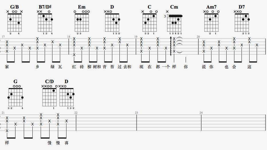 这首歌曲的曲谱以图文混排的形式呈现,包括吉他弹唱演示和视频教学。通过这个详尽的教程,你可以轻松地学会这首歌的演奏技巧。无论是初学者还是有经验的音乐爱好者,都能从中受益匪浅。演示以清晰的吉他弹奏示范为主,辅以专业的视频教学,使学习过程更加生动有趣。这不仅是一份简