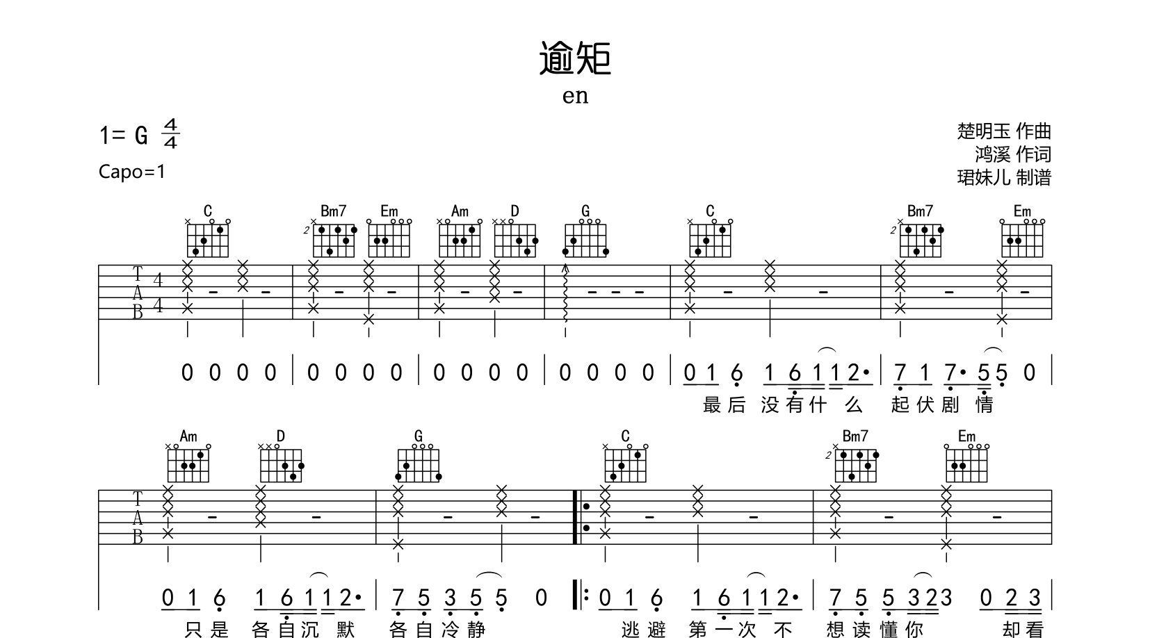 《《逾矩吉他谱》(G调)》内容来自于互联网,不能保证内容的准确性与完整性,仅供学习交流欣赏,请勿用于其它用途,内容版权归原作者及来源网站所有,如有侵犯到您的权益请来信告知,我们将及时删除。