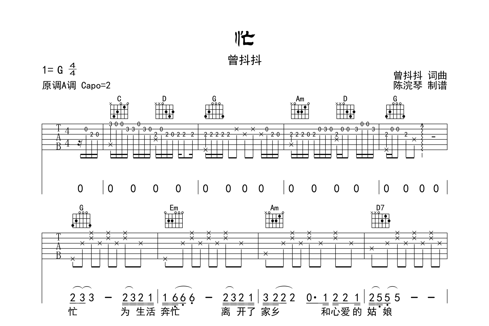 《曾抖抖《忙吉他谱》(A调)》内容来自于互联网,不能保证内容的准确性与完整性,仅供学习交流欣赏,请勿用于其它用途,内容版权归原作者及来源网站所有,如有侵犯到您的权益请来信告知,我们将及时删除。