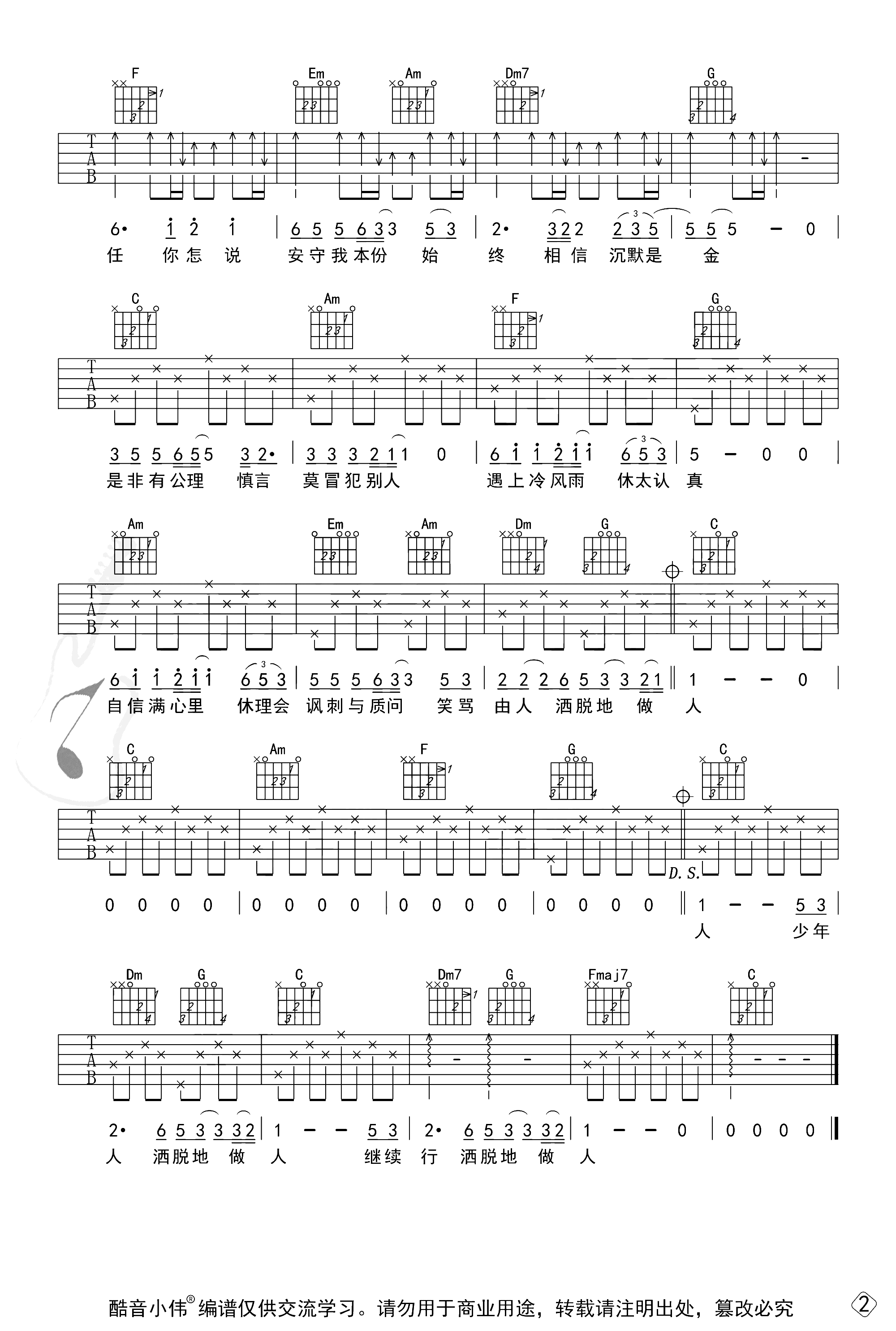 《张国荣《沉默是金吉他谱》(C调)》内容来自于互联网,不能保证内容的准确性与完整性,仅供学习交流欣赏,请勿用于其它用途,内容版权归原作者及来源网站所有,如有侵犯到您的权益请来信告知,我们将及时删除。
