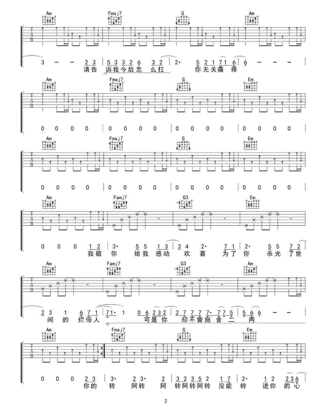 吉他是我获得满足的源泉,但要领略它的美妙,必须投入不懈的努力。《你的酒馆对我打了烊》是陈雪凝创作并演唱的一首歌曲,讲述着与时间的交融,酒馆闭店却无碍心底的沉醉。这份琴谱由吴先生扒谱制谱,原调为降E调,但此版本以C调指法编配,演唱时夹变调夹2品。主歌以简单的分解