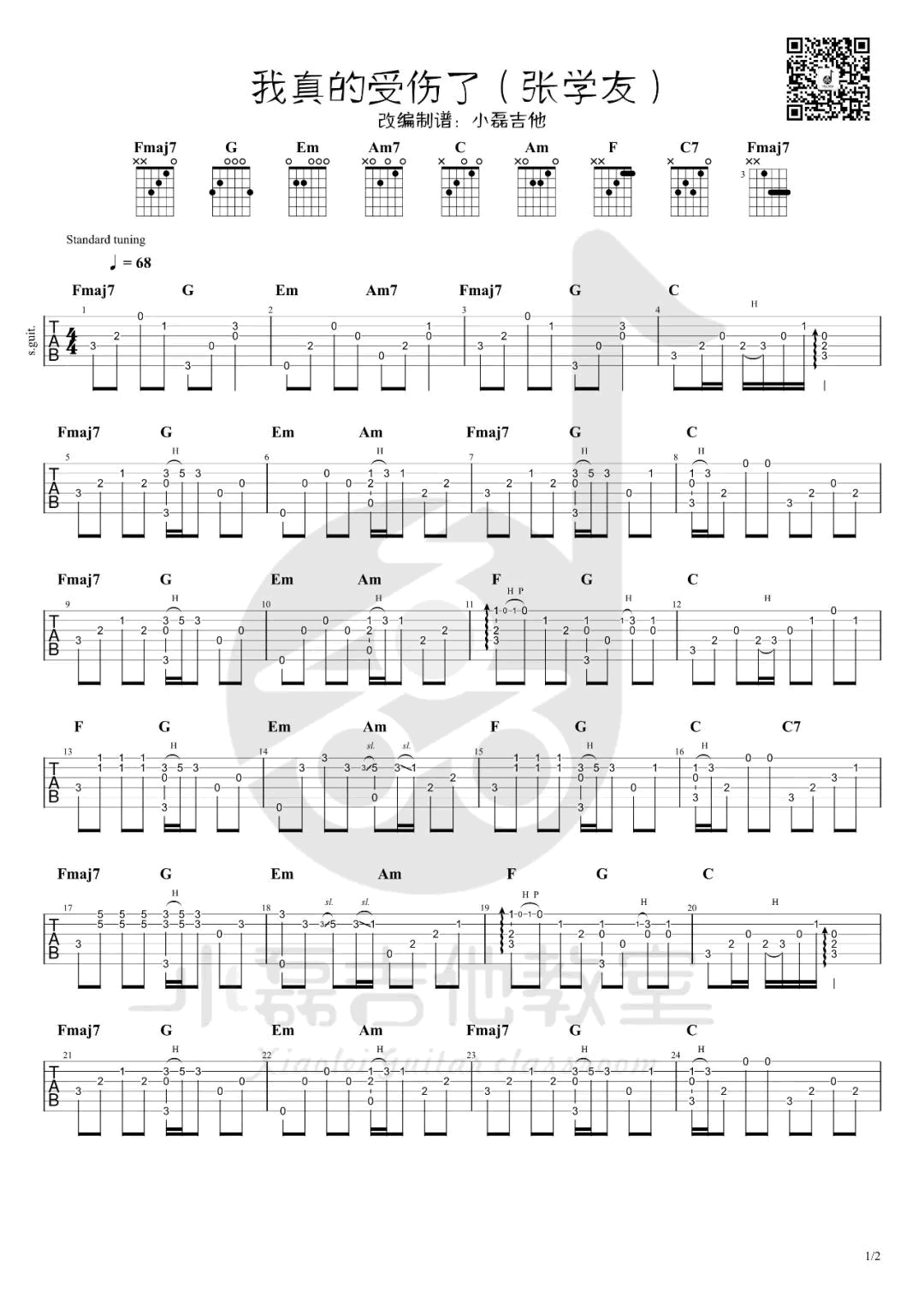 《张学友《我真的受伤了吉他谱》》内容来自于互联网,不能保证内容的准确性与完整性,仅供学习交流欣赏,请勿用于其它用途,内容版权归原作者及来源网站所有,如有侵犯到您的权益请来信告知,我们将及时删除。