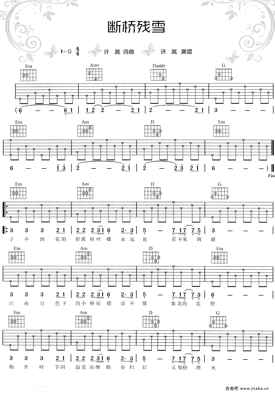 许嵩《断桥残雪吉他谱》