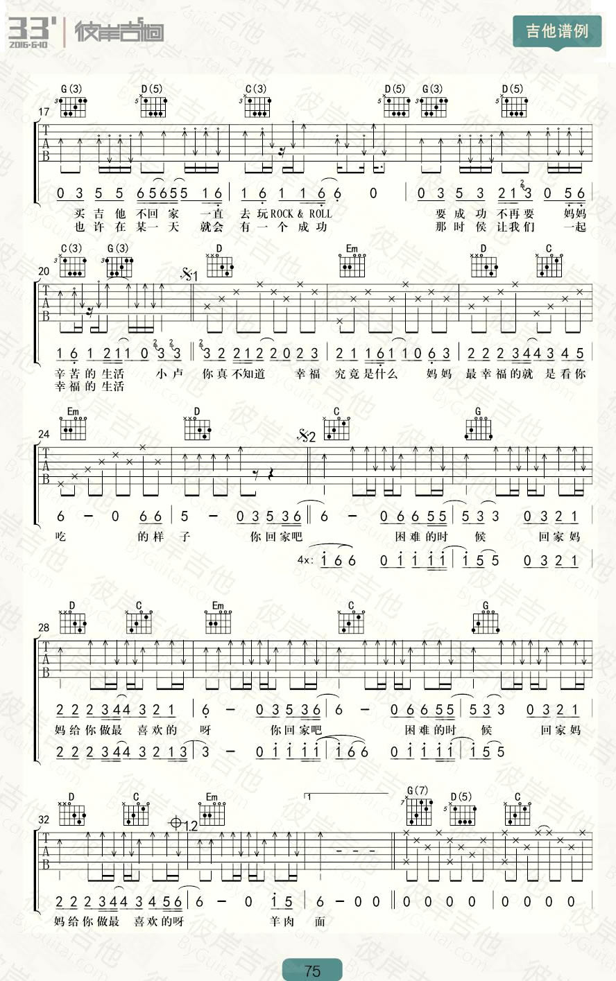 《布衣乐队《羊肉面吉他谱》(G调)》内容来自于互联网,不能保证内容的准确性与完整性,仅供学习交流欣赏,请勿用于其它用途,内容版权归原作者及来源网站所有,如有侵犯到您的权益请来信告知,我们将及时删除。
