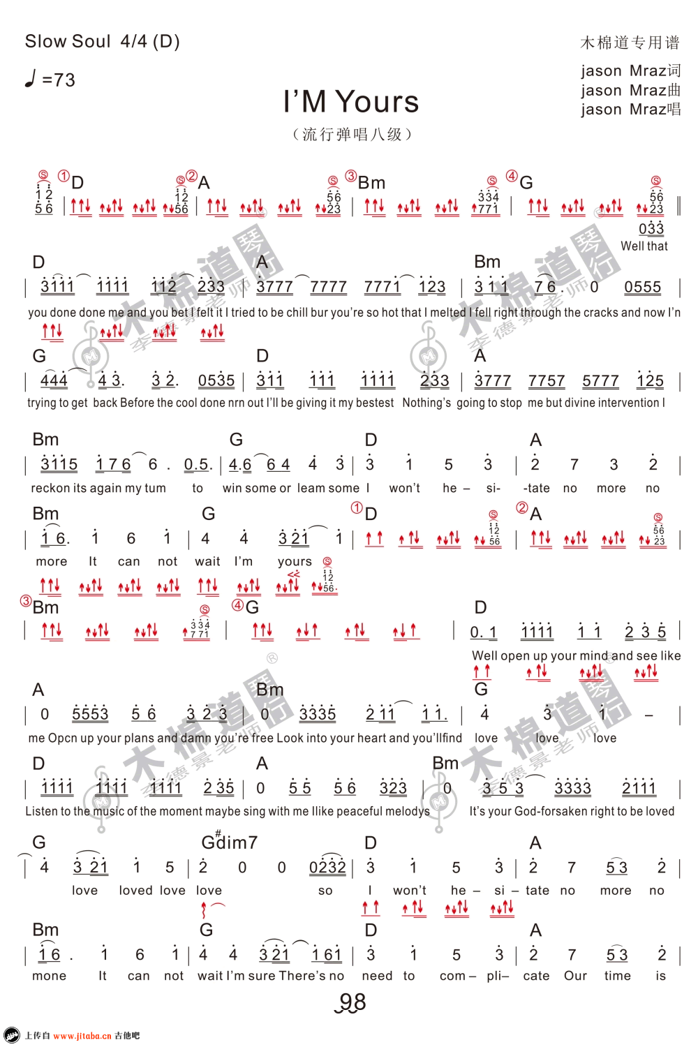 《杰森·玛耶兹《I'm yours吉他谱》》内容来自于互联网,不能保证内容的准确性与完整性,仅供学习交流欣赏,请勿用于其它用途,内容版权归原作者及来源网站所有,如有侵犯到您的权益请来信告知,我们将及时删除。
