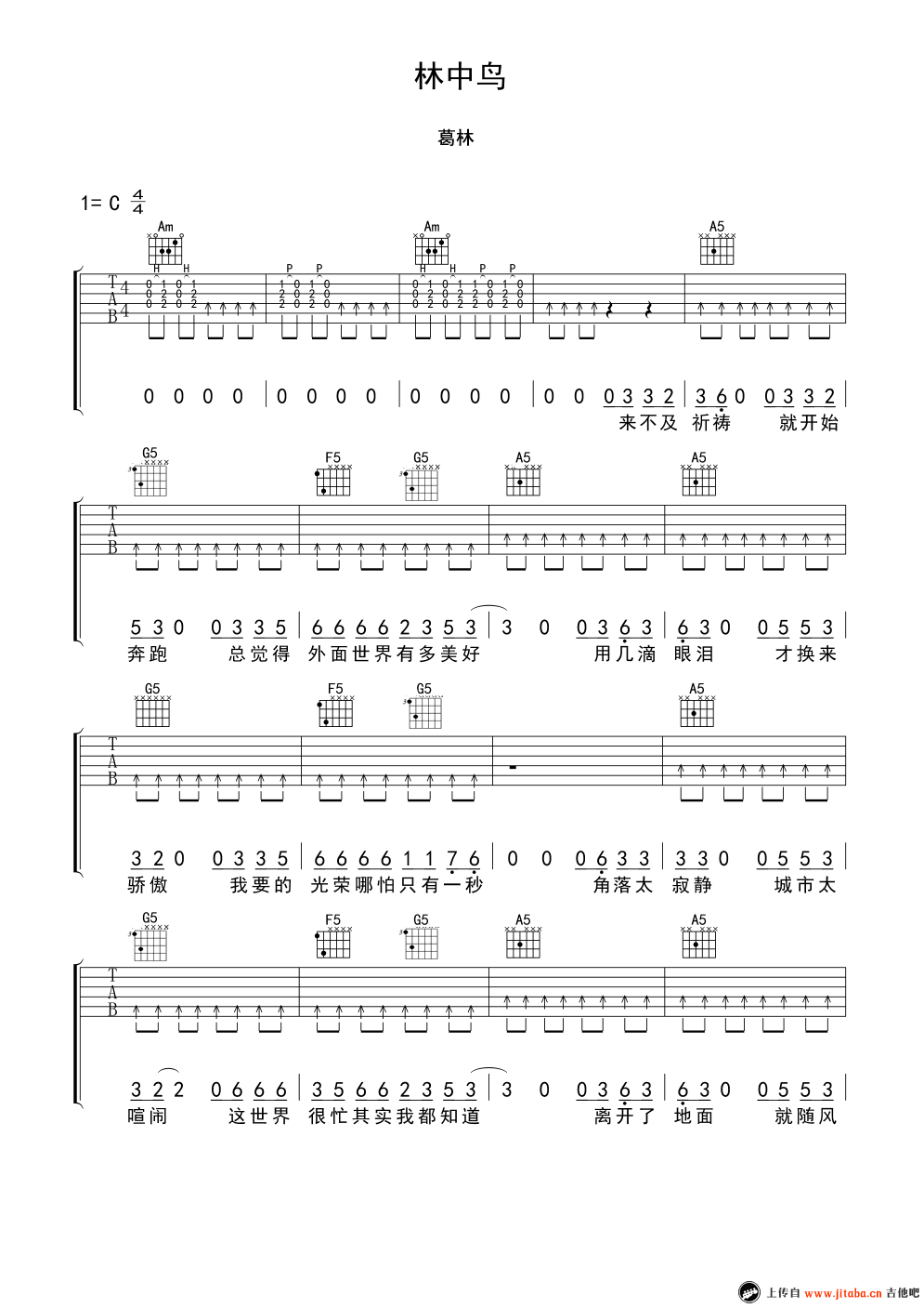 《葛林《林中鸟吉他谱》(C调)》内容来自于互联网,不能保证内容的准确性与完整性,仅供学习交流欣赏,请勿用于其它用途,内容版权归原作者及来源网站所有,如有侵犯到您的权益请来信告知,我们将及时删除。