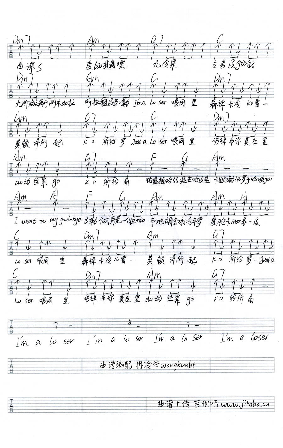 《《LOSER吉他谱》》内容来自于互联网,不能保证内容的准确性与完整性,仅供学习交流欣赏,请勿用于其它用途,内容版权归原作者及来源网站所有,如有侵犯到您的权益请来信告知,我们将及时删除。