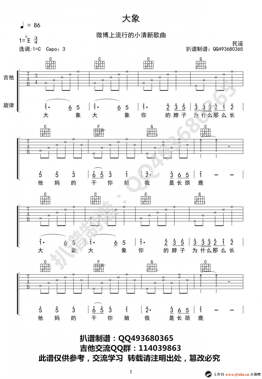 《小新《大象吉他谱》》内容来自于互联网,不能保证内容的准确性与完整性,仅供学习交流欣赏,请勿用于其它用途,内容版权归原作者及来源网站所有,如有侵犯到您的权益请来信告知,我们将及时删除。
