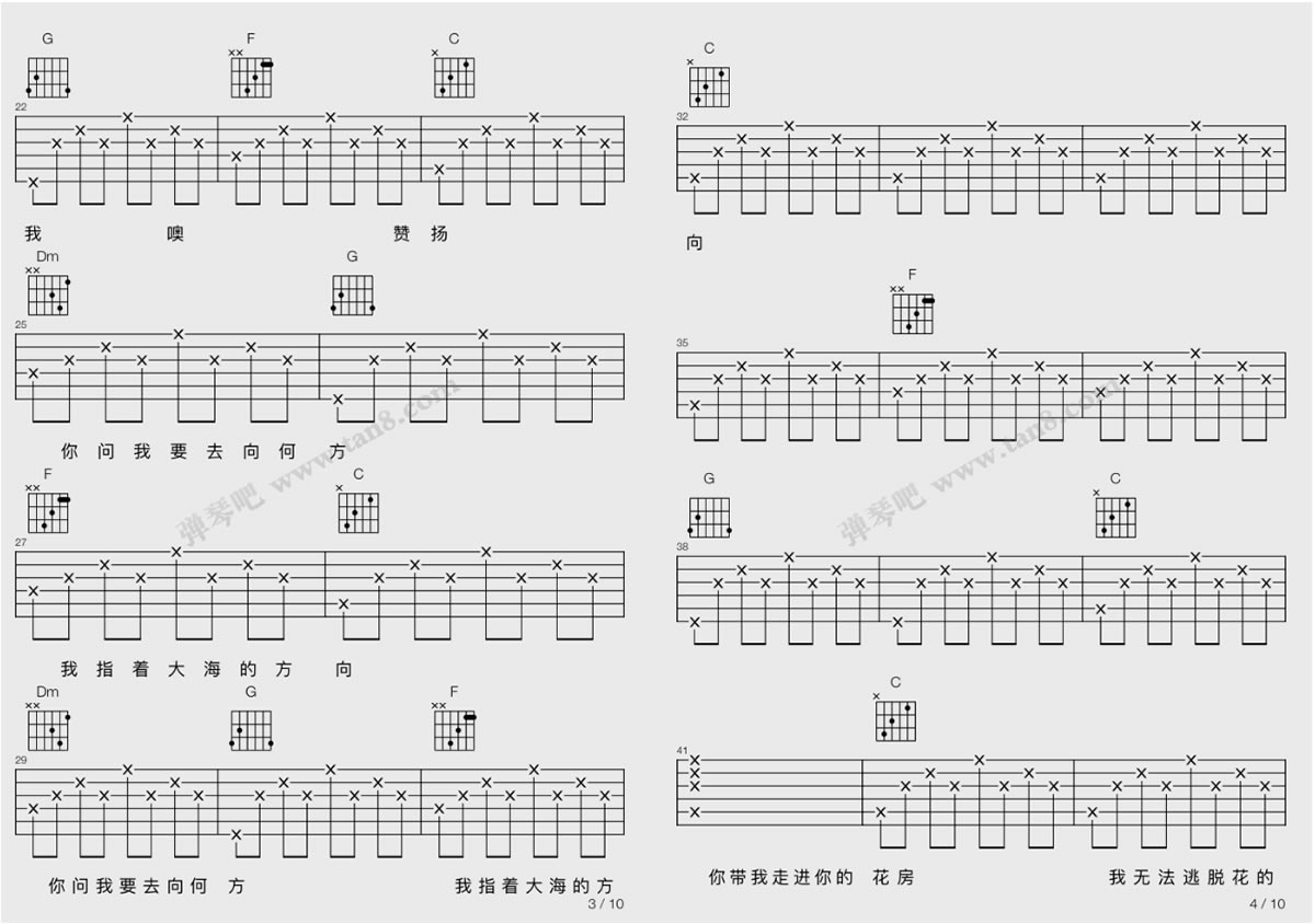 这是崔健经典老歌《花房姑娘》的吉他谱,由韩韩校订,采用C调指法编配,呈现吉他分解版的完整图片格式。这首温柔版本的歌曲带领我们穿越青葱岁月,追溯往昔时光。歌曲以朴实的语言和简单平淡的旋律,表达了浓郁的哀伤和深深的思念。