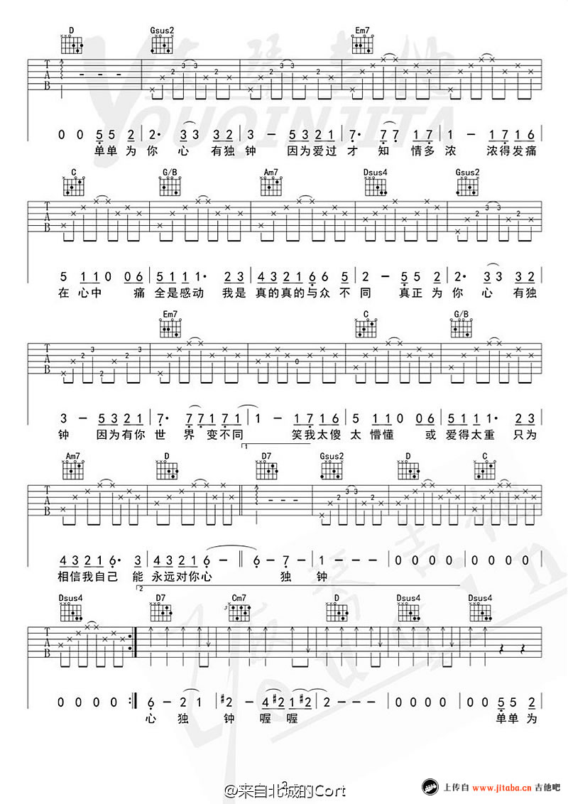 《陈晓东《心有独钟吉他谱》》内容来自于互联网,不能保证内容的准确性与完整性,仅供学习交流欣赏,请勿用于其它用途,内容版权归原作者及来源网站所有,如有侵犯到您的权益请来信告知,我们将及时删除。