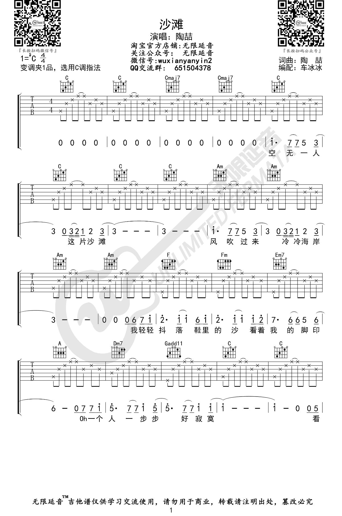 《陶喆《沙滩吉他谱》(C调)》内容来自于互联网,不能保证内容的准确性与完整性,仅供学习交流欣赏,请勿用于其它用途,内容版权归原作者及来源网站所有,如有侵犯到您的权益请来信告知,我们将及时删除。
