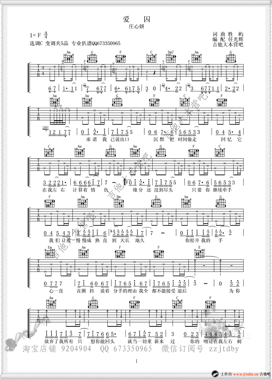 《庄心妍《爱囚吉他谱》(C调)》内容来自于互联网,不能保证内容的准确性与完整性,仅供学习交流欣赏,请勿用于其它用途,内容版权归原作者及来源网站所有,如有侵犯到您的权益请来信告知,我们将及时删除。