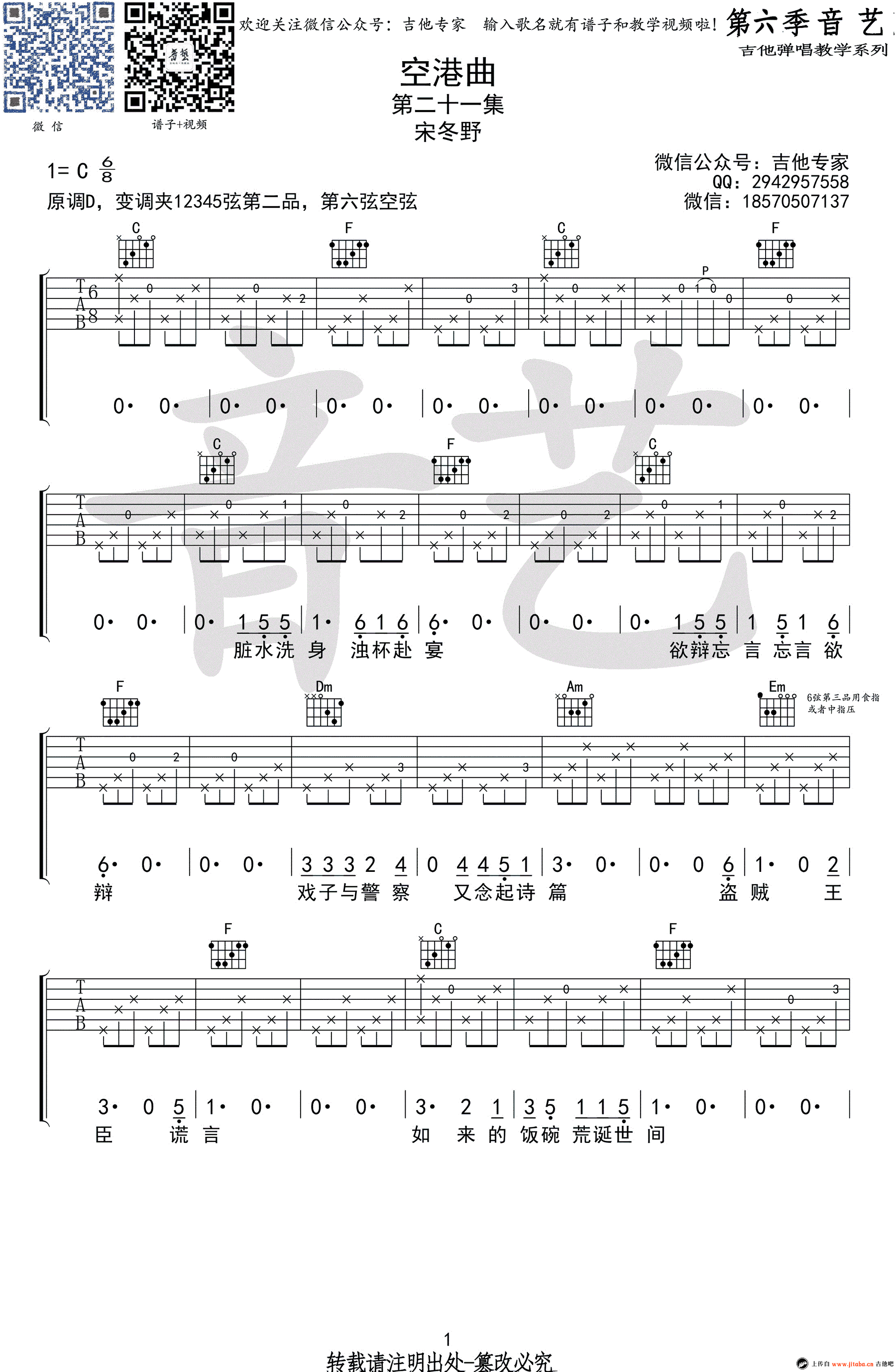 《宋冬野《空港曲吉他谱》(C调)》内容来自于互联网,不能保证内容的准确性与完整性,仅供学习交流欣赏,请勿用于其它用途,内容版权归原作者及来源网站所有,如有侵犯到您的权益请来信告知,我们将及时删除。