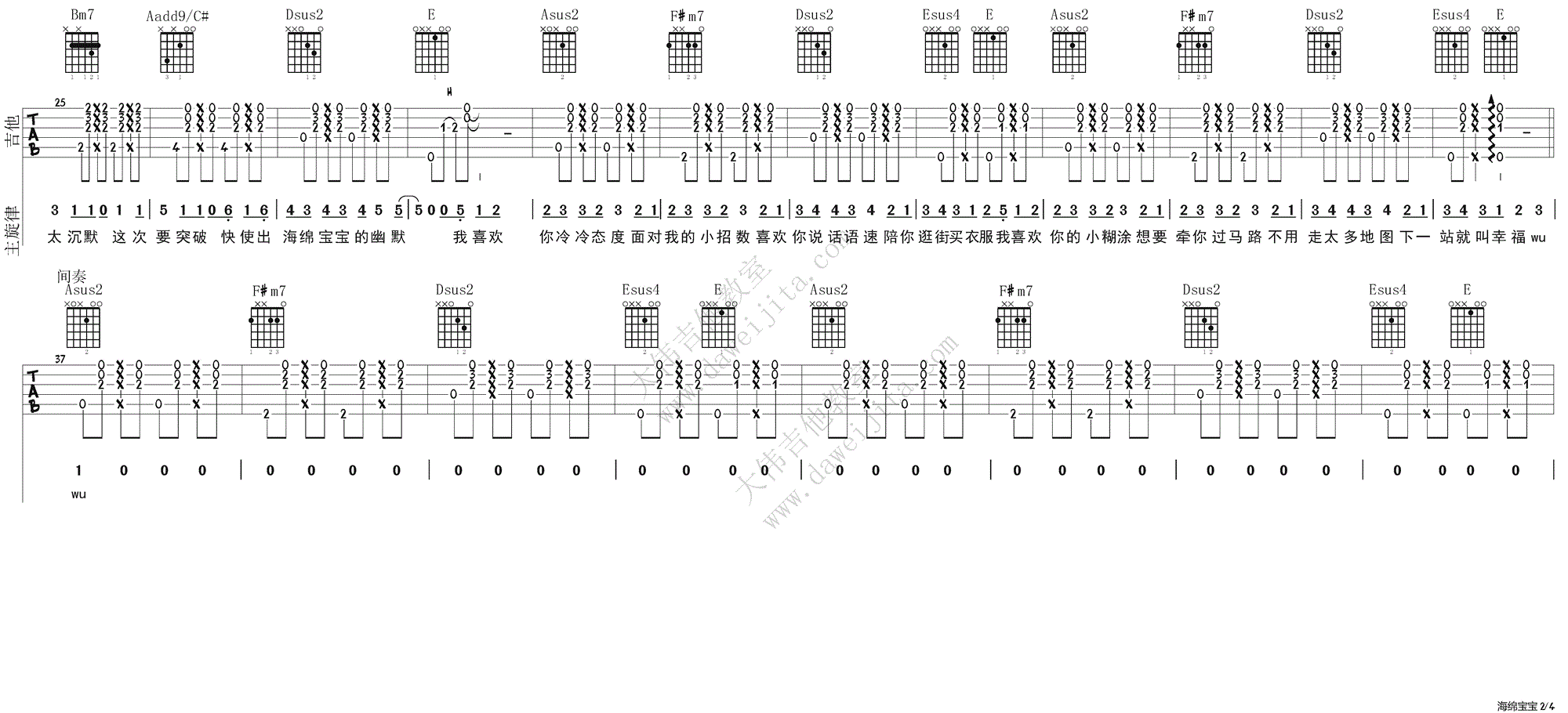 《回音哥《海绵宝宝吉他谱》(C调)》内容来自于互联网,不能保证内容的准确性与完整性,仅供学习交流欣赏,请勿用于其它用途,内容版权归原作者及来源网站所有,如有侵犯到您的权益请来信告知,我们将及时删除。