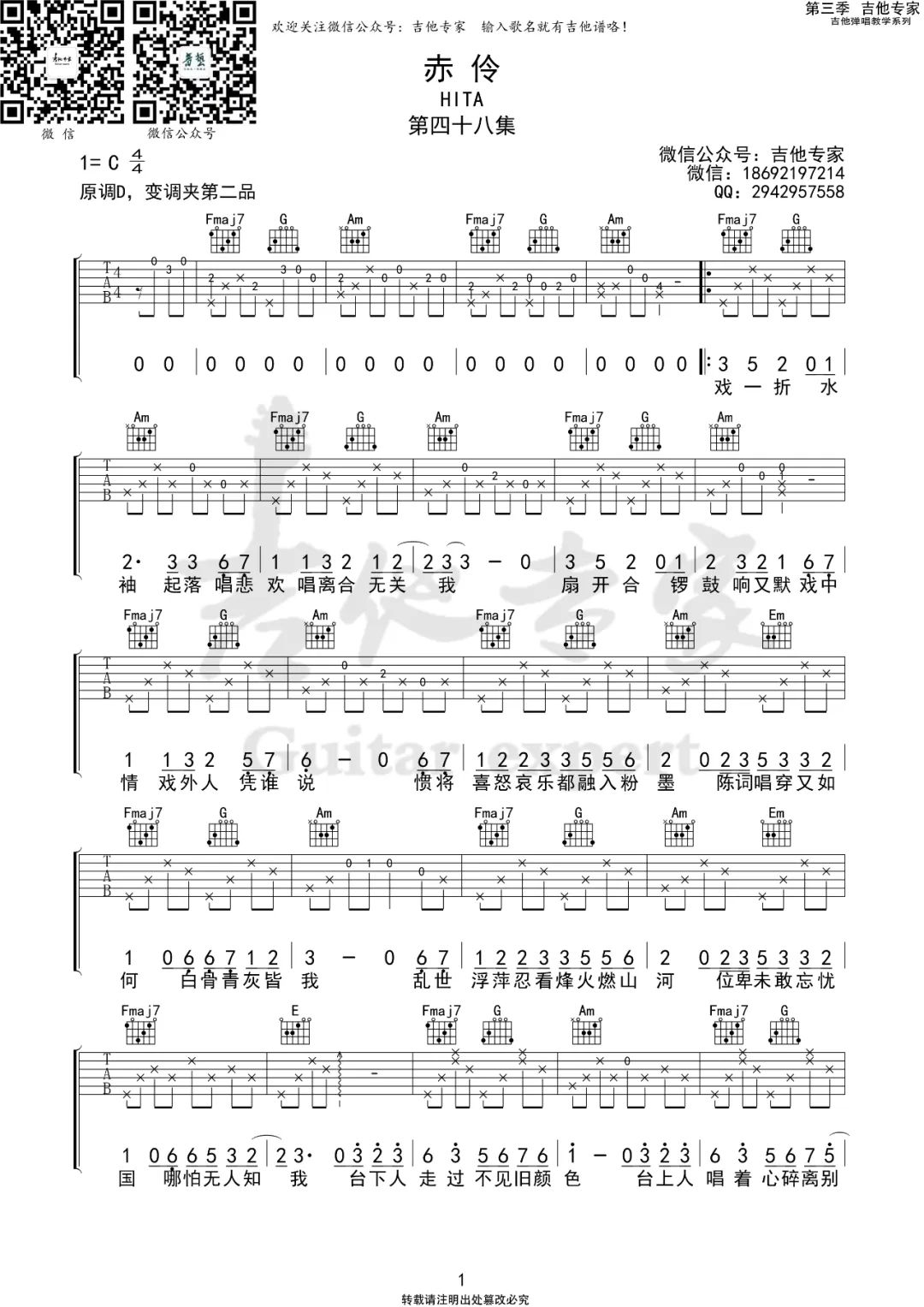 《是二智呀《赤伶吉他谱》(E调)》内容来自于互联网,不能保证内容的准确性与完整性,仅供学习交流欣赏,请勿用于其它用途,内容版权归原作者及来源网站所有,如有侵犯到您的权益请来信告知,我们将及时删除。