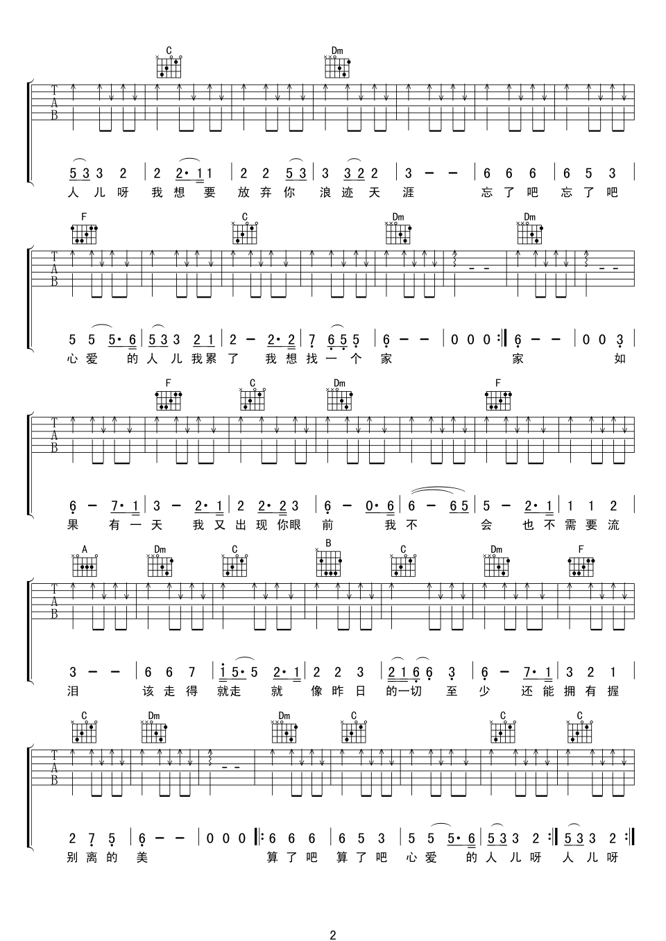 《伍佰《算了吧吉他谱》(C调)》内容来自于互联网,不能保证内容的准确性与完整性,仅供学习交流欣赏,请勿用于其它用途,内容版权归原作者及来源网站所有,如有侵犯到您的权益请来信告知,我们将及时删除。