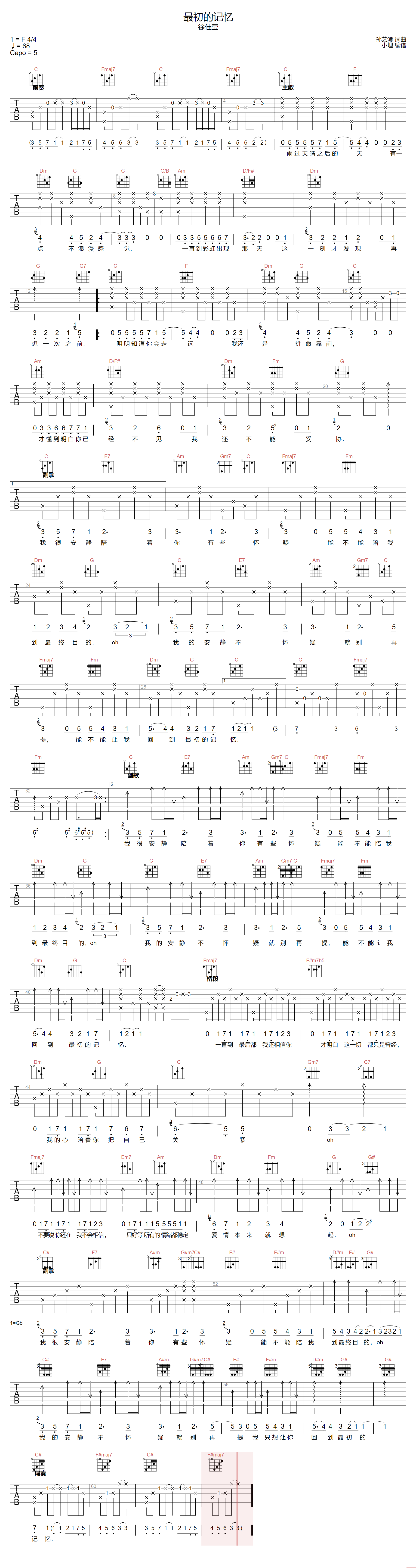 《徐佳莹《最初的记忆吉他谱》》内容来自于互联网,不能保证内容的准确性与完整性,仅供学习交流欣赏,请勿用于其它用途,内容版权归原作者及来源网站所有,如有侵犯到您的权益请来信告知,我们将及时删除。