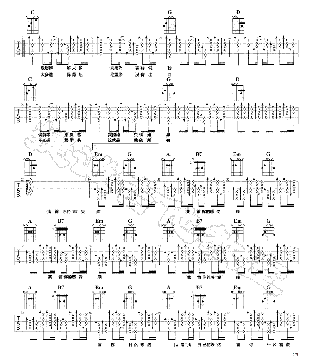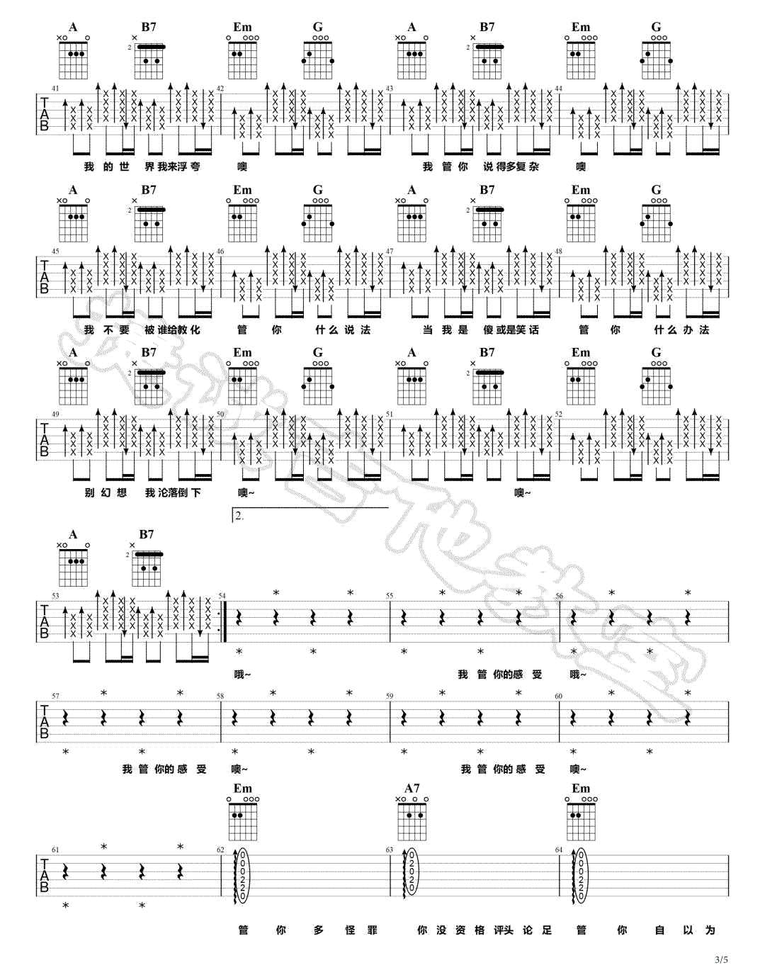 《华晨宇《我管你吉他谱》(C调)》内容来自于互联网,不能保证内容的准确性与完整性,仅供学习交流欣赏,请勿用于其它用途,内容版权归原作者及来源网站所有,如有侵犯到您的权益请来信告知,我们将及时删除。
