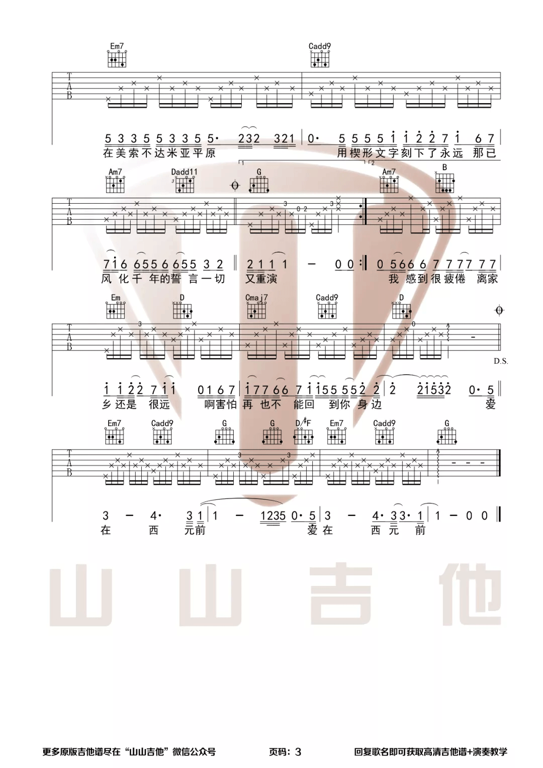 《周杰伦《爱在西元前吉他谱》》内容来自于互联网,不能保证内容的准确性与完整性,仅供学习交流欣赏,请勿用于其它用途,内容版权归原作者及来源网站所有,如有侵犯到您的权益请来信告知,我们将及时删除。