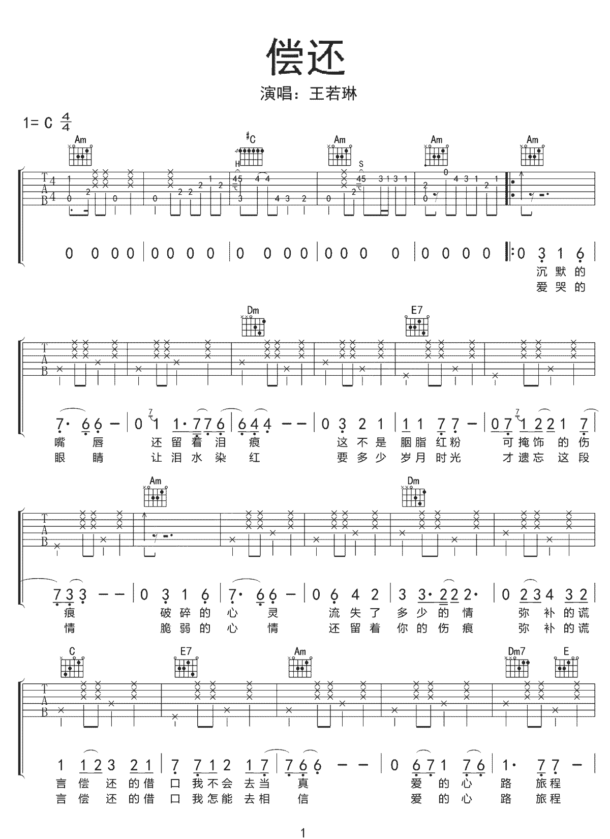 《王若琳/邓丽君《偿还吉他谱》(C调)》内容来自于互联网,不能保证内容的准确性与完整性,仅供学习交流欣赏,请勿用于其它用途,内容版权归原作者及来源网站所有,如有侵犯到您的权益请来信告知,我们将及时删除。
