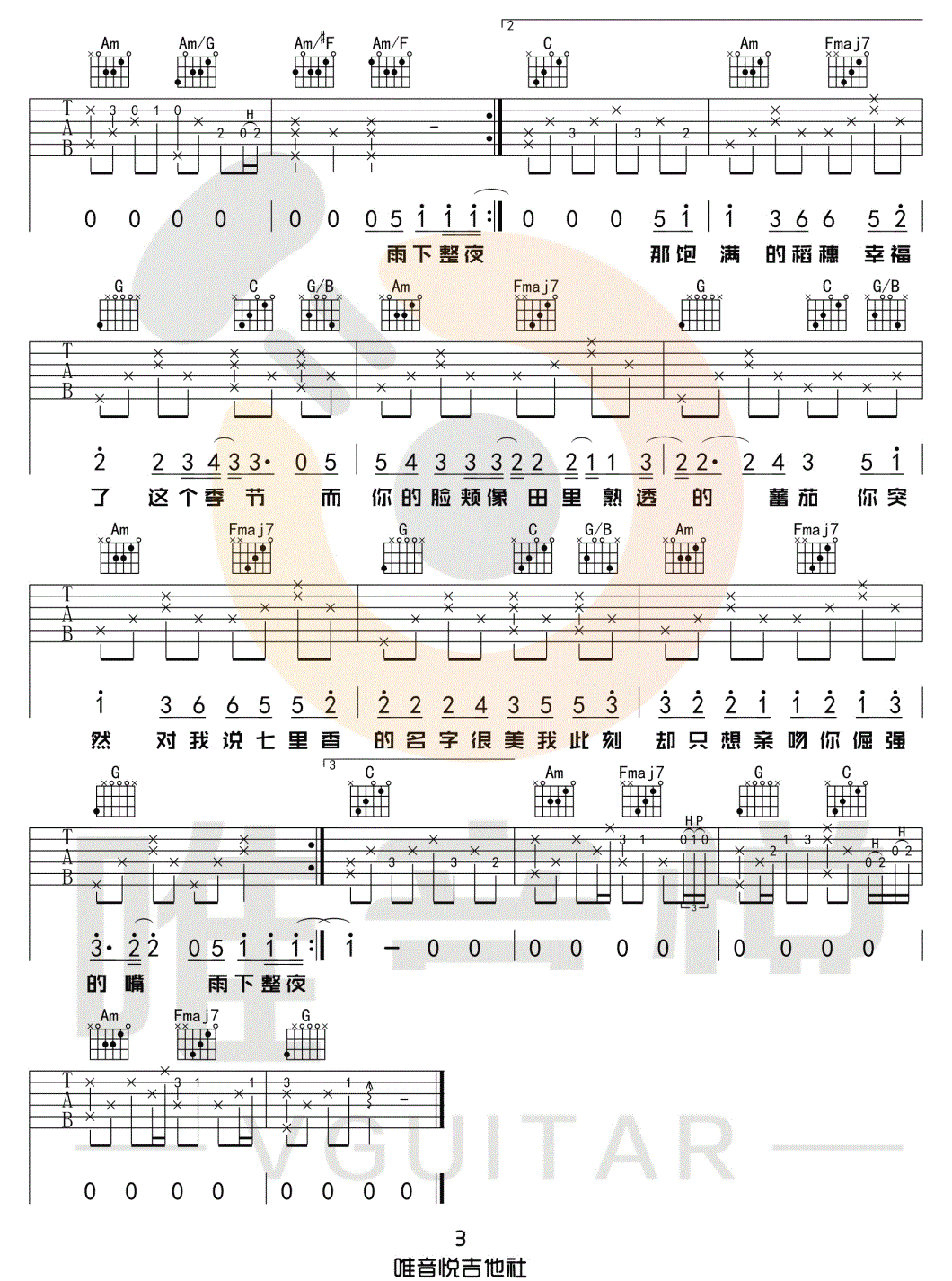 《周杰伦《七里香吉他谱》(E调)》内容来自于互联网,不能保证内容的准确性与完整性,仅供学习交流欣赏,请勿用于其它用途,内容版权归原作者及来源网站所有,如有侵犯到您的权益请来信告知,我们将及时删除。
