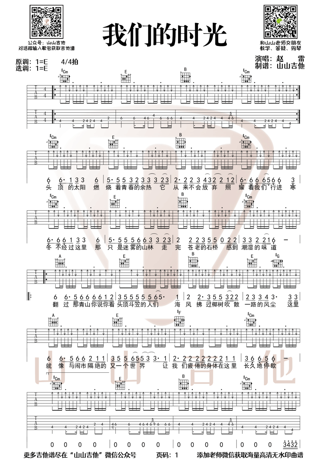 《赵雷《我们的时光吉他谱》(C调)》内容来自于互联网,不能保证内容的准确性与完整性,仅供学习交流欣赏,请勿用于其它用途,内容版权归原作者及来源网站所有,如有侵犯到您的权益请来信告知,我们将及时删除。